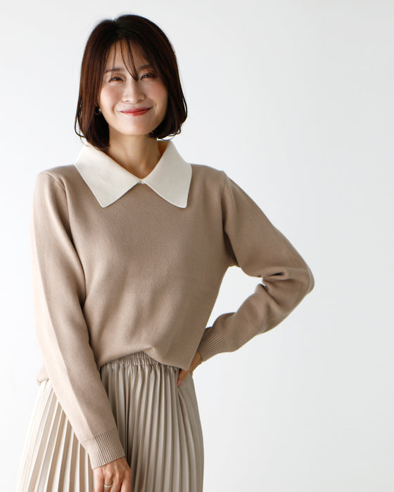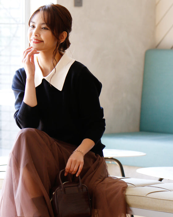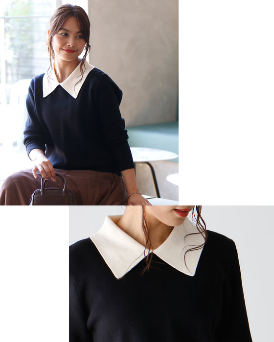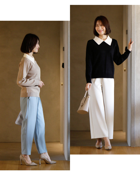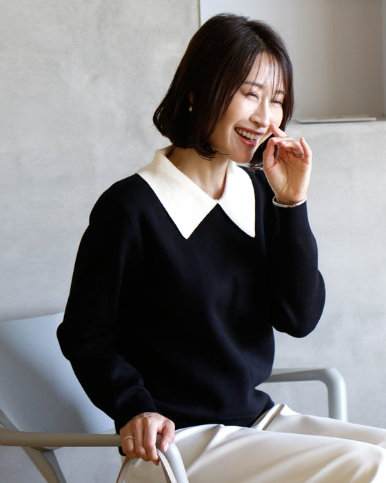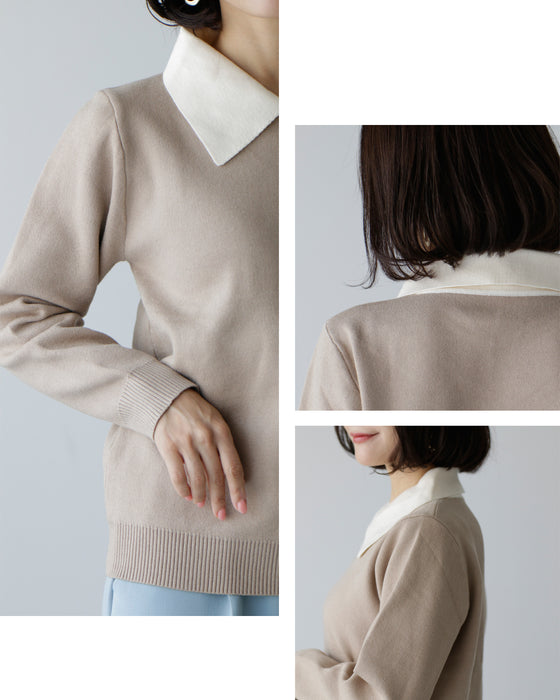 たった一枚の衿付きニットでも、まるでレイヤードしたかのような立体感