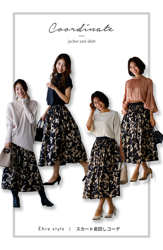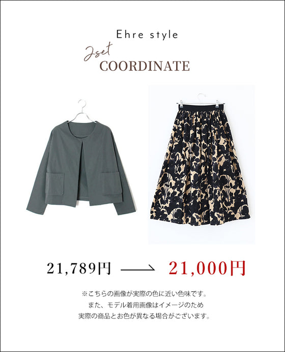 セットコーデ レディース ジャケット 長袖 薄手 ライトアウター 羽織 チャコール グレー 華やか 上品 ブラック 黒 きれいめ アラフォー 仕事 お呼ばれ オケージョン 大人 スカート 花柄 柄物 総柄 可愛い かわいい 小柄さんもOK Ehrestyle フリーサイズ