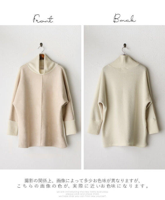 ワンランク上ゆく大人の魅せニット 異素材ドッキングトップス『ベージュ』