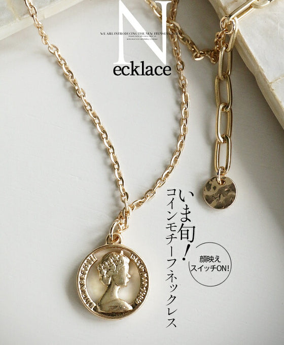 • いま旬 顔映えスイッチオン コインモチーフネックレス『ゴールド』