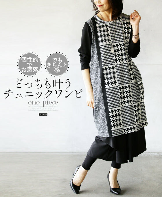 個性的でお洒落、でもきちんと感、どっちも叶うチュニックワンピース