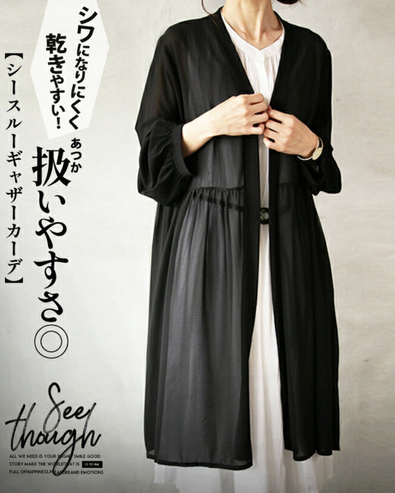 シワになりにくい乾きやすい!あつかいやすいシースルーギャザーカーデ