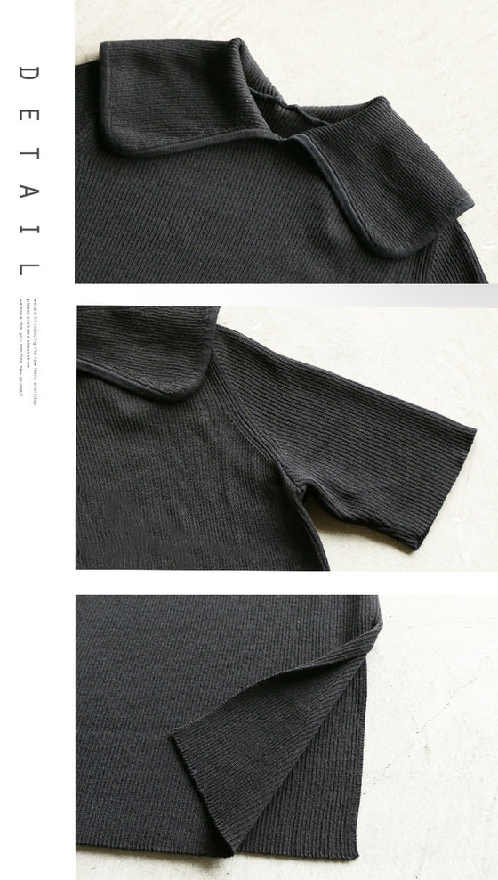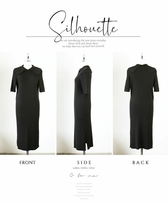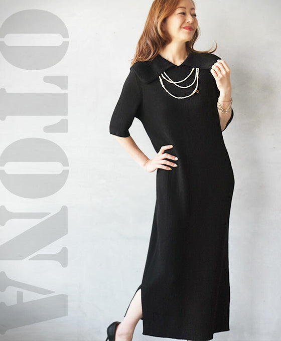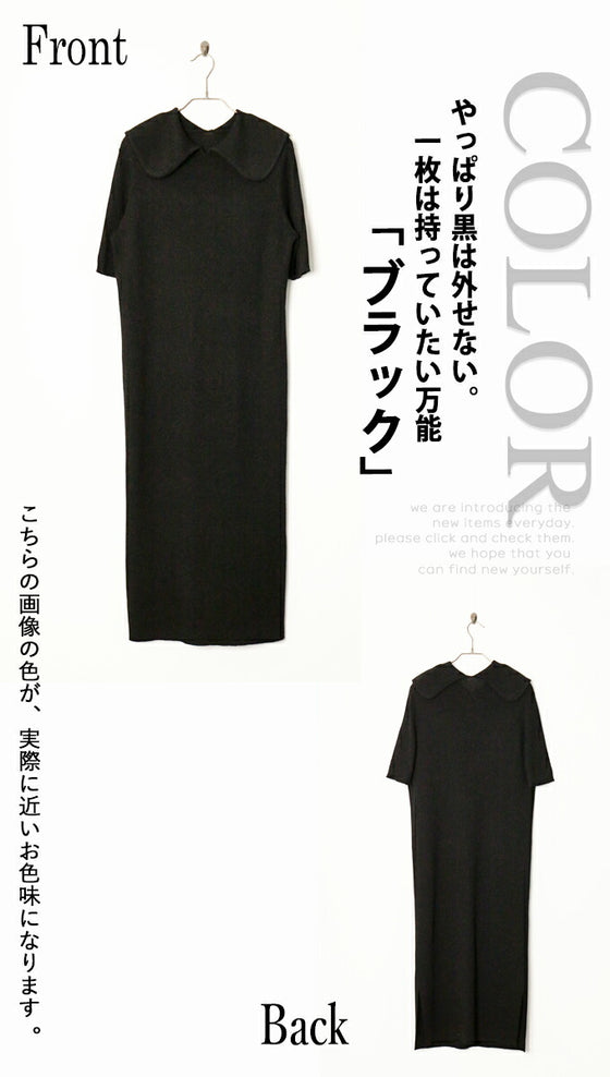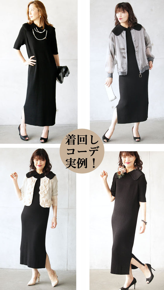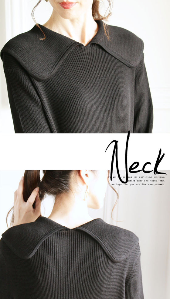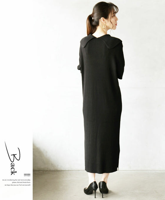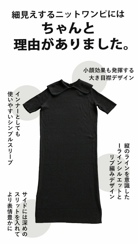 大き目襟が今っぽいキレイ見えニットワンピ『ブラック』