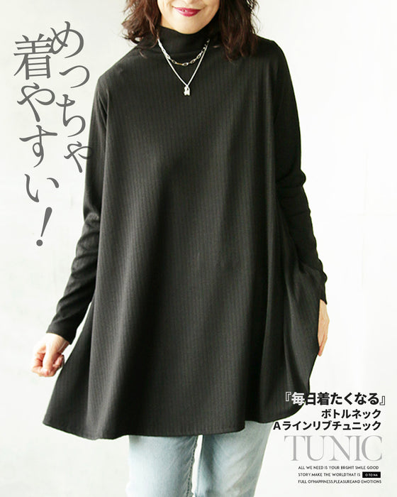 めっちゃ着やすい!毎日着たくなるボトルネックAラインリブチュニック