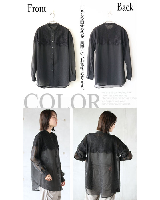 透け過ぎず、いやらしさのない上品な透け感が女性らしさを格段にアップしてくれるシースルーシャツ。重い印象の【黒】もこの透け感があることで軽くて涼し気な印象に♪