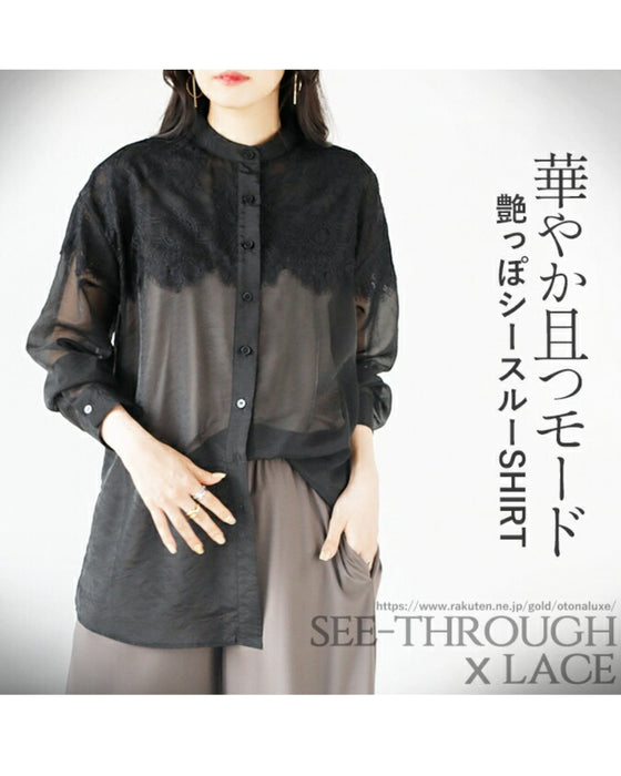 華やか且つモード艶っぽシースルーSHIRT トップス