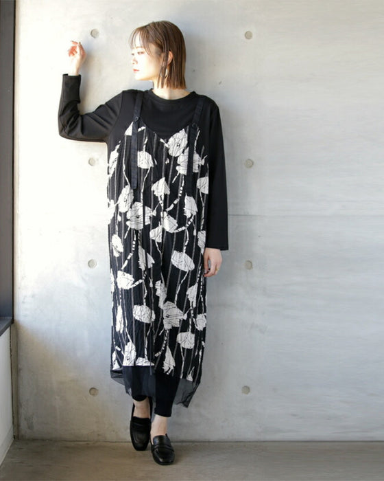 ストライプ 花で 細魅せ。ドッキングワンピース