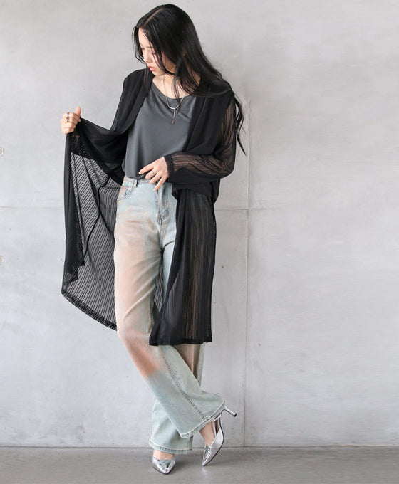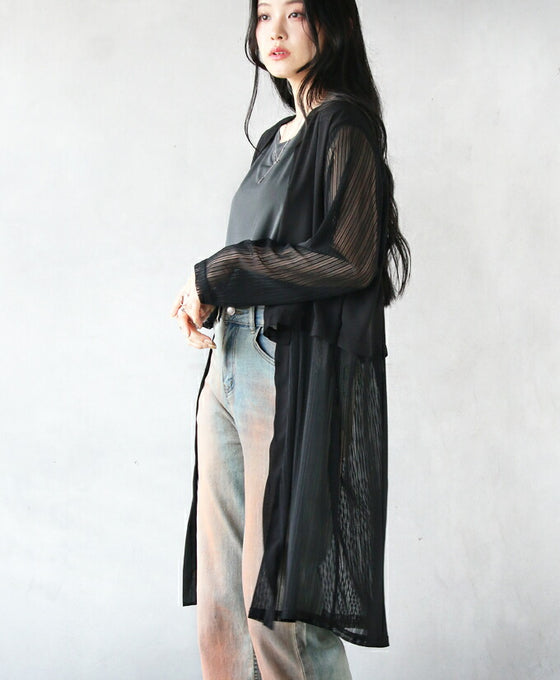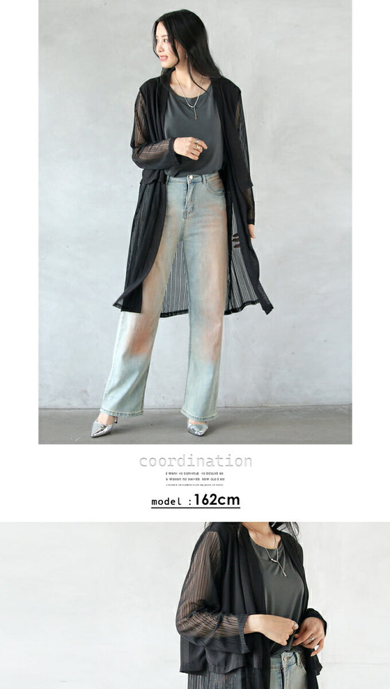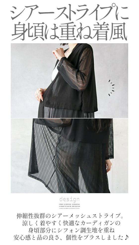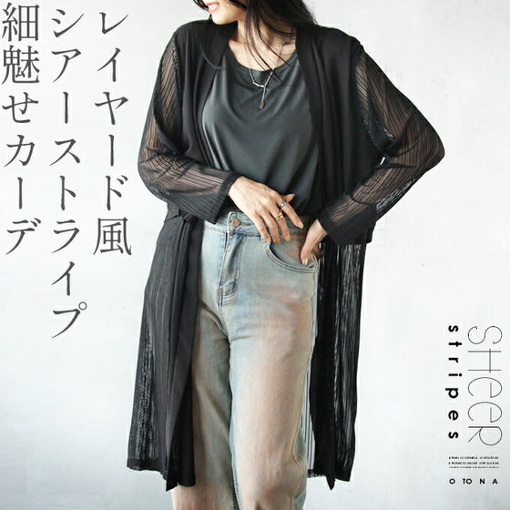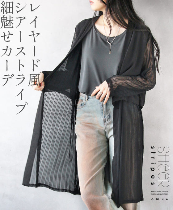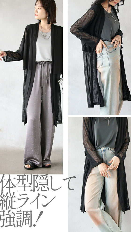 すとんと落ちるシルエットとストライプ地で細魅せ効果も抜群!