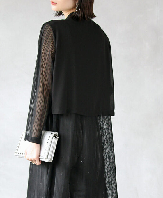 身頃部分にシフォン生地を重ね、透け感を抑え大人っぽく。
