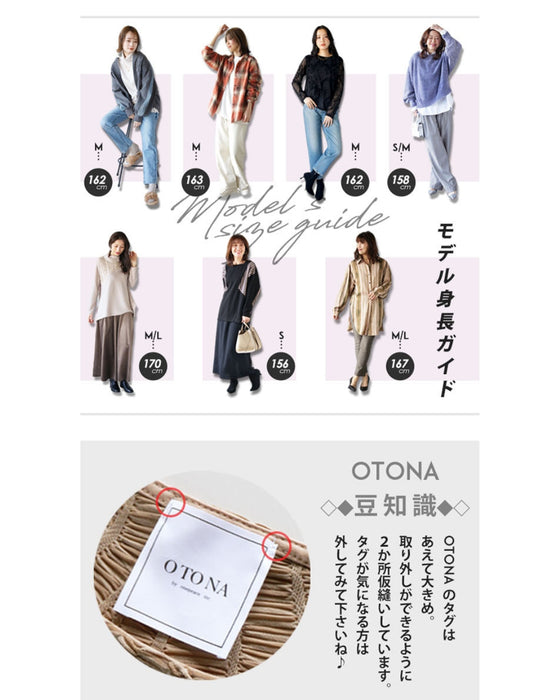 カジュアル・可愛い・カッコいい・キレイ4つの軸をテーマに「明日、何を着ようか?」ワクワクする気持ち、こんな着こなしがしてみたい!そんな気持ちになれるスタイルをOTONAが提案いたします。