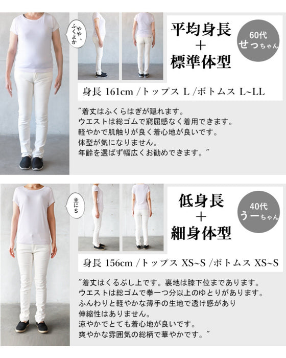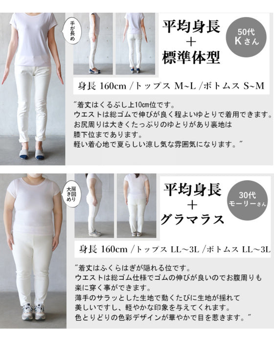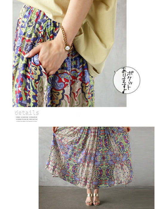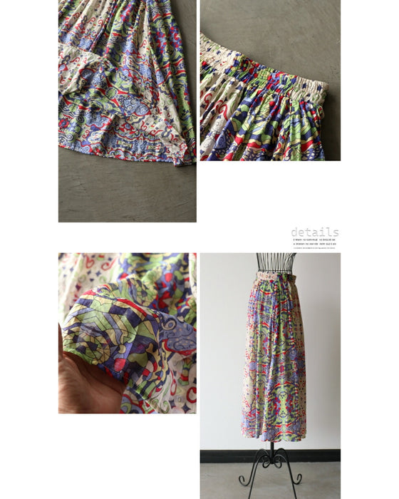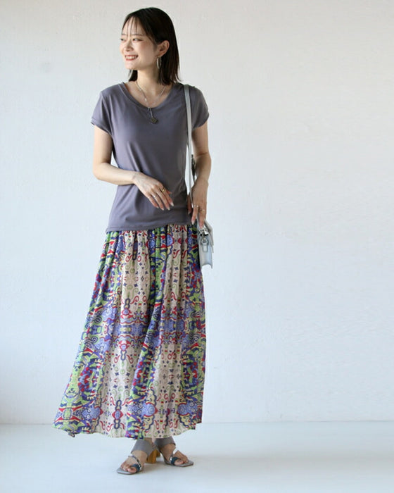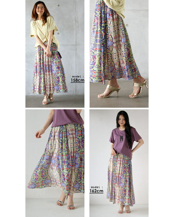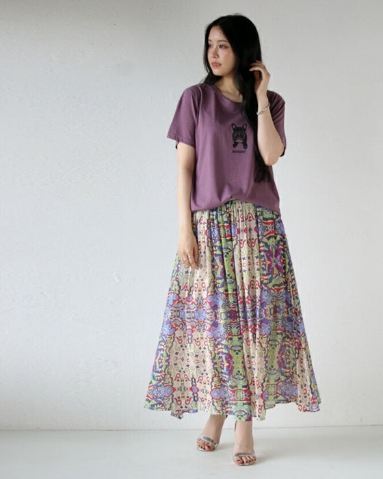 ギャザーたっぷり、ウエスト総ゴムでゆったり着られる。