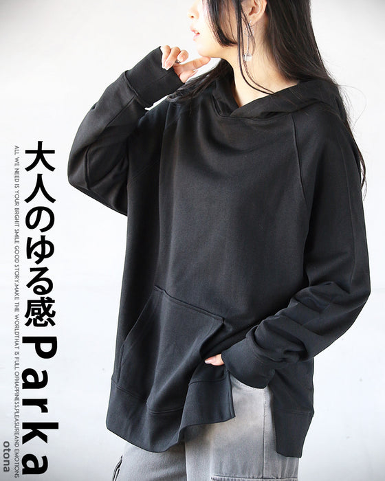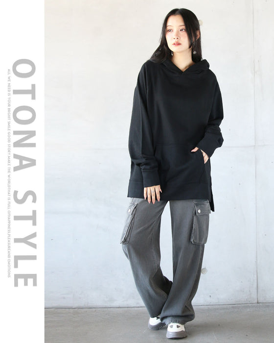 ■絶対的に使いやすい無地で着回しの効くカジュアルの定番アイテムスウェットパーカー!サイドのスリットでさりげないレイヤードコーデが今っぽいこなれたお洒落な雰囲気に。