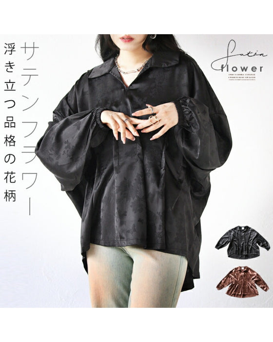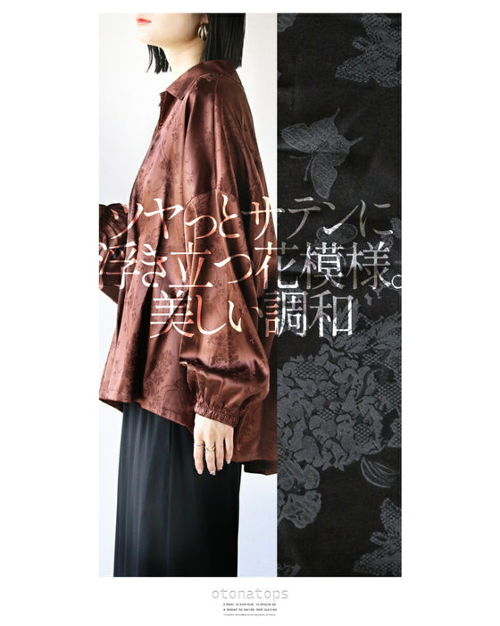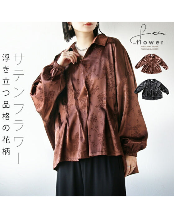 サテンフラワー 浮き立つ品格の花柄 トップス
