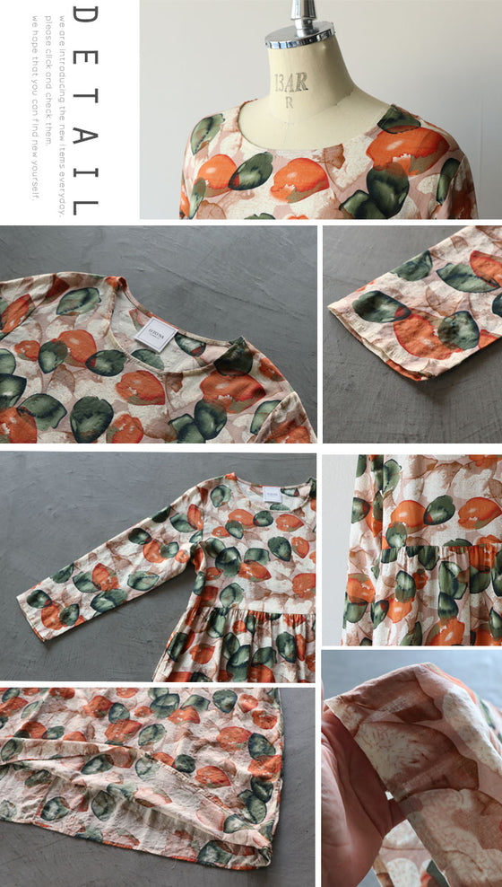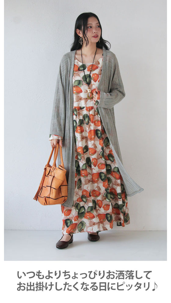 ■ストンと着るだけでパッと映えるアースカラーのリーフ柄ワンピース