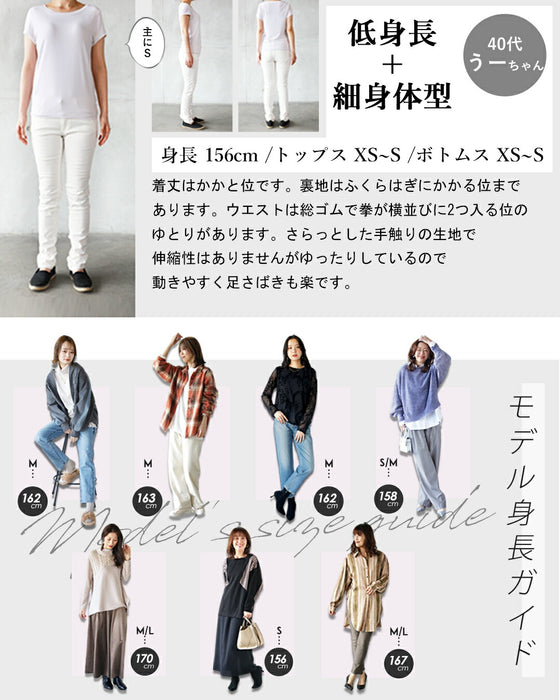 ウエストは幅広総ゴム、裏地つきでなめらかな肌触り。 薄手で軽やかな着用感です。