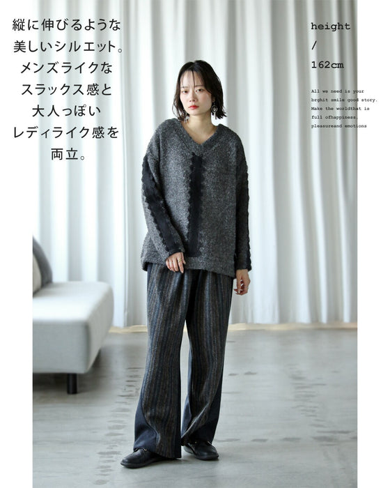 (ストライプ部分)ポリエステル 60% 毛 10% アクリル 10% レーヨン 10% ナイロン 5% 綿 5%