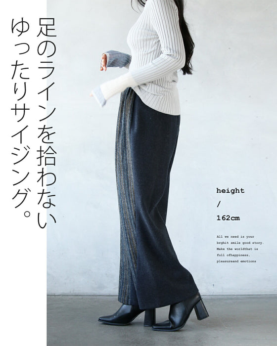 広がりすぎずストレートラインをベースにしてだぼっとしすぎない すっきり設計。股上は深く、ヒップを目立たせないのが 嬉しいポイント。 ハイウエストで穿いて脚長効果を最大限に発揮させます。