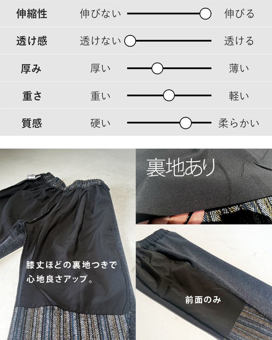 防寒に◎。膝丈ほどの裏地つきで穿き心地の良さアップ。 弾力ストレッチで着脱もラク。