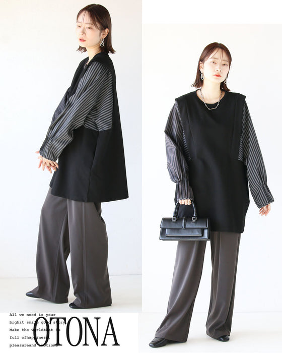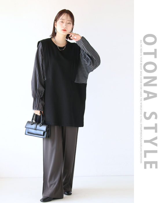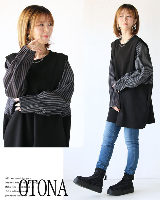 こなれ感漂うフェイクレイヤード 異素材チュニック