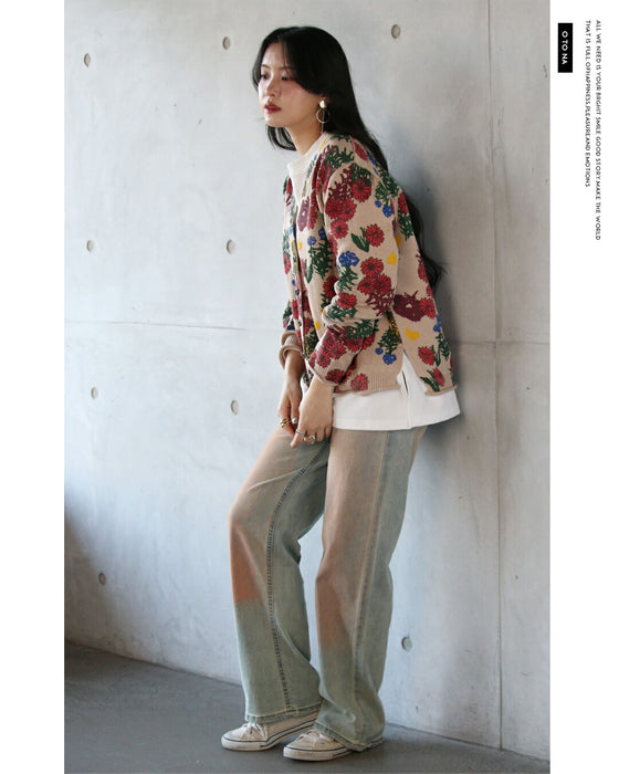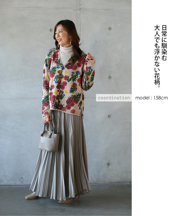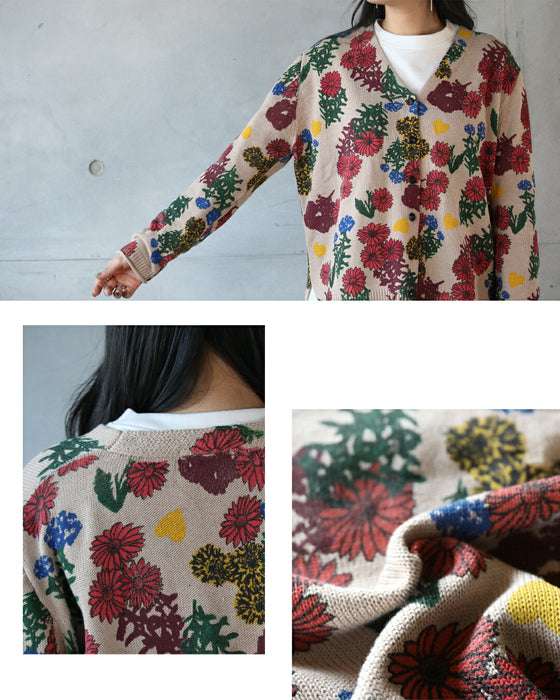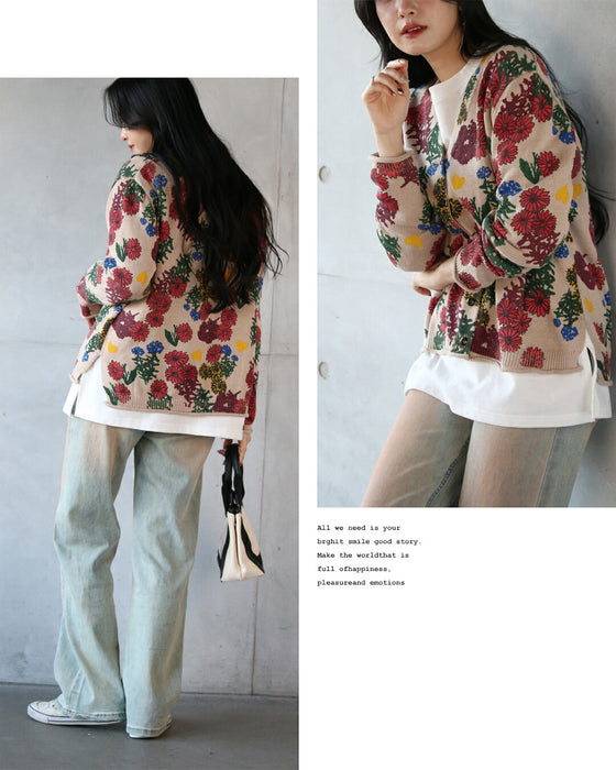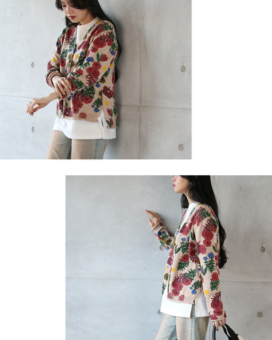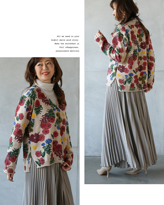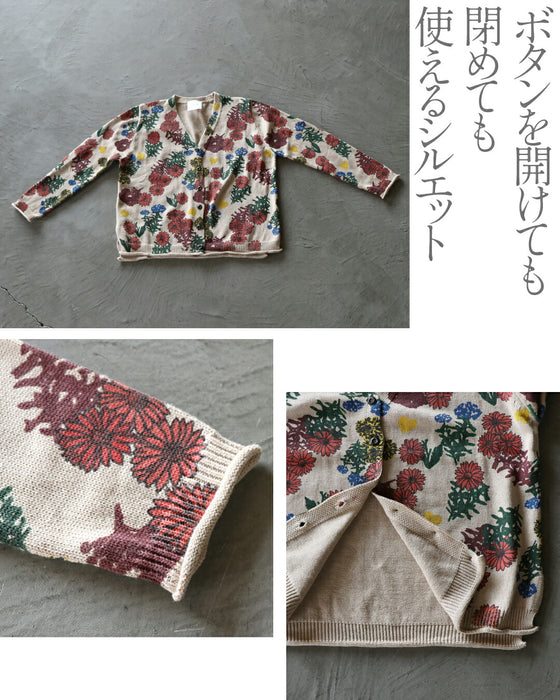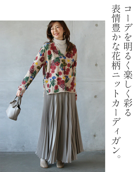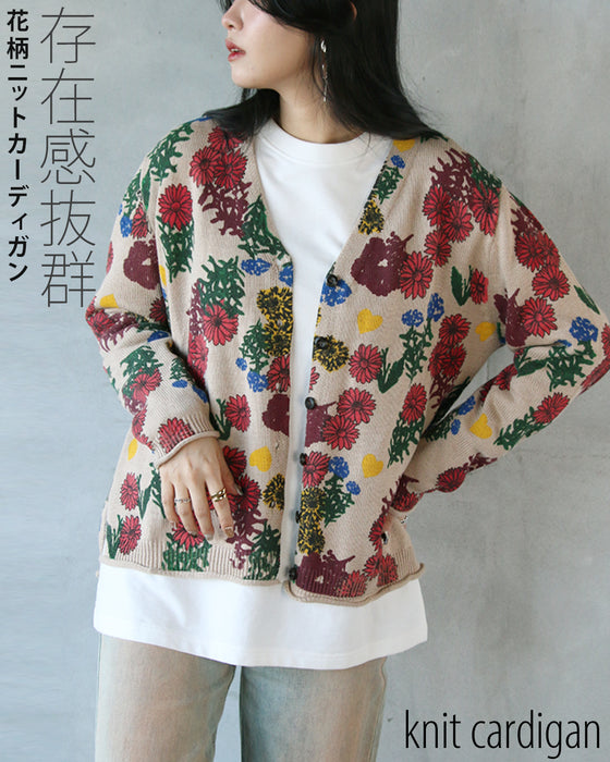 ■コーデを明るく楽しく彩る、表情豊かな花柄ニットカーディガン。