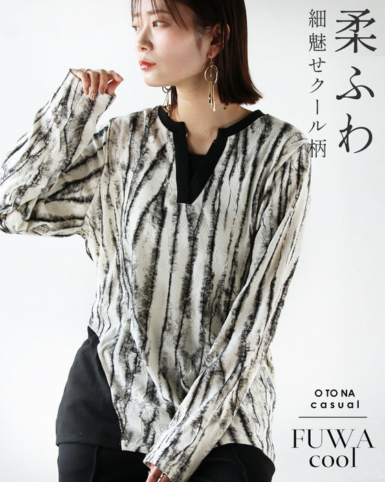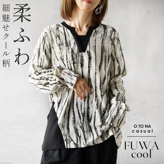 ■クールに個性的な柄、立体感のある生地で1枚で主役になるプルオーバーです。