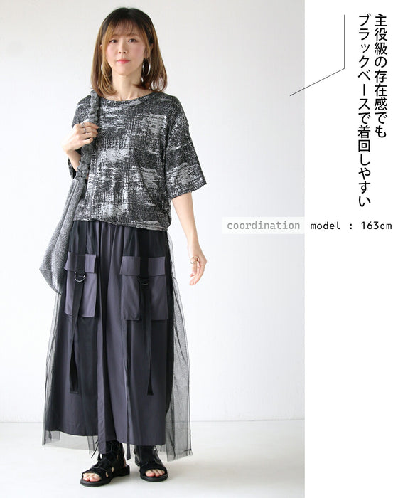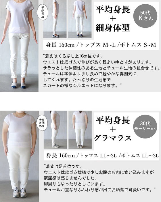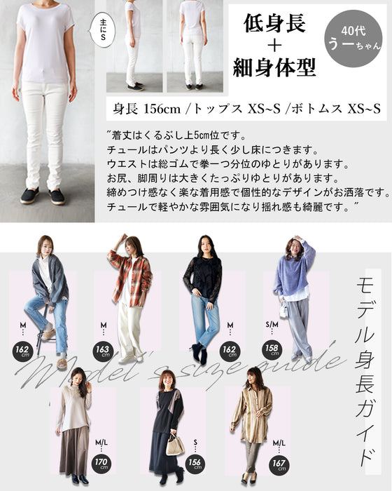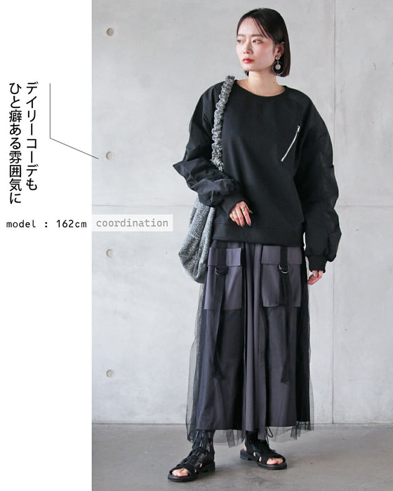 ふわっと重ねたチュールが女性らしさと立体感を引き立て、癖のあるデザインでも柔らかな印象にしてくれます。