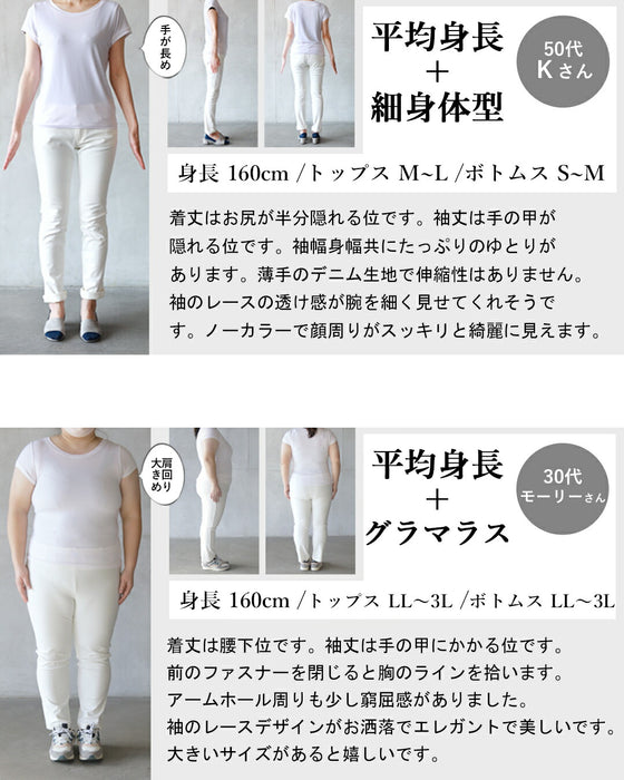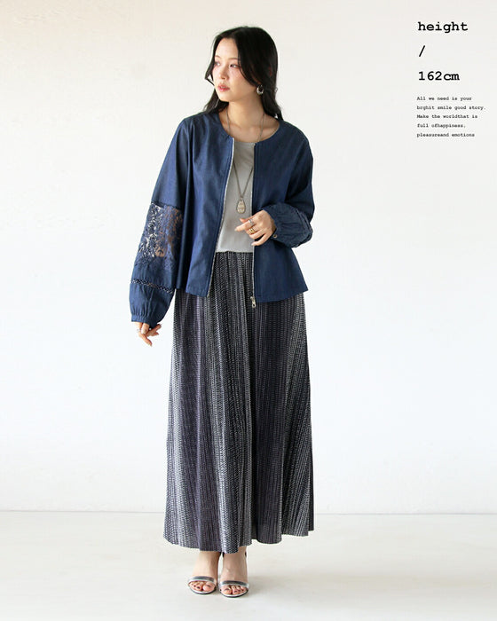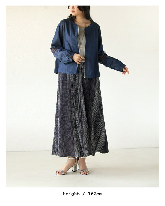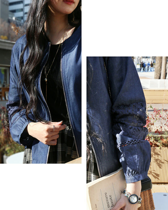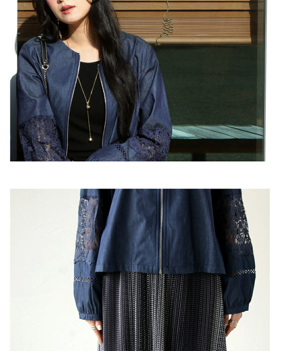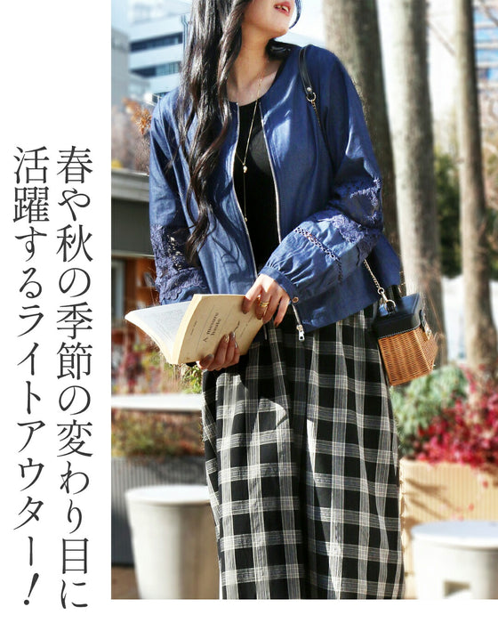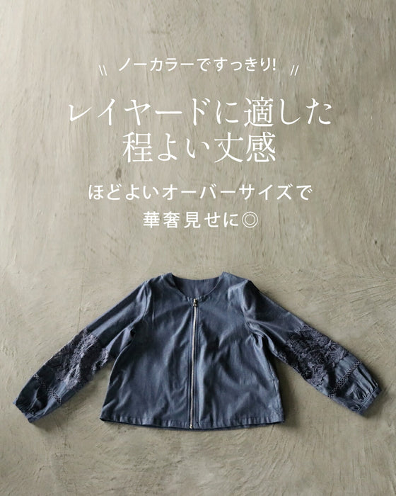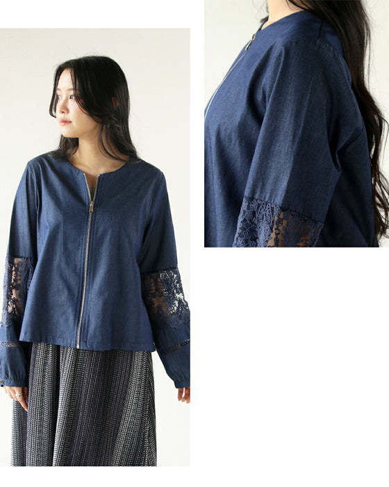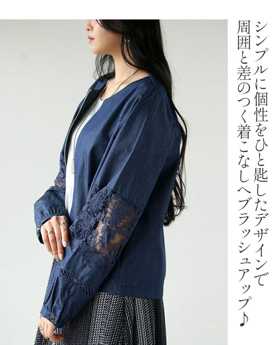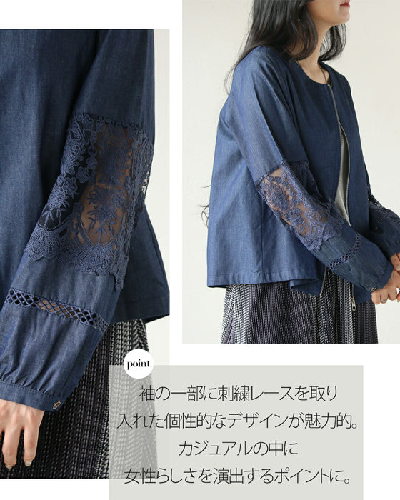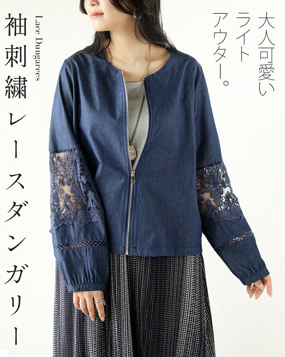 袖刺繍レースダンガリーが大人可愛いライトアウター