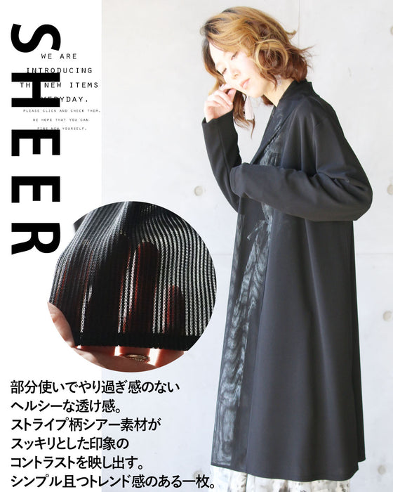 ■部分使いでやり過ぎ感のないヘルシーな透け感。ストライプ柄シアー素材がスッキリとした印象のコントラストを映し出す。シンプル且つトレンド感のある一枚。
