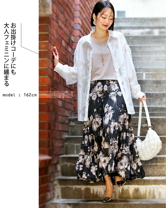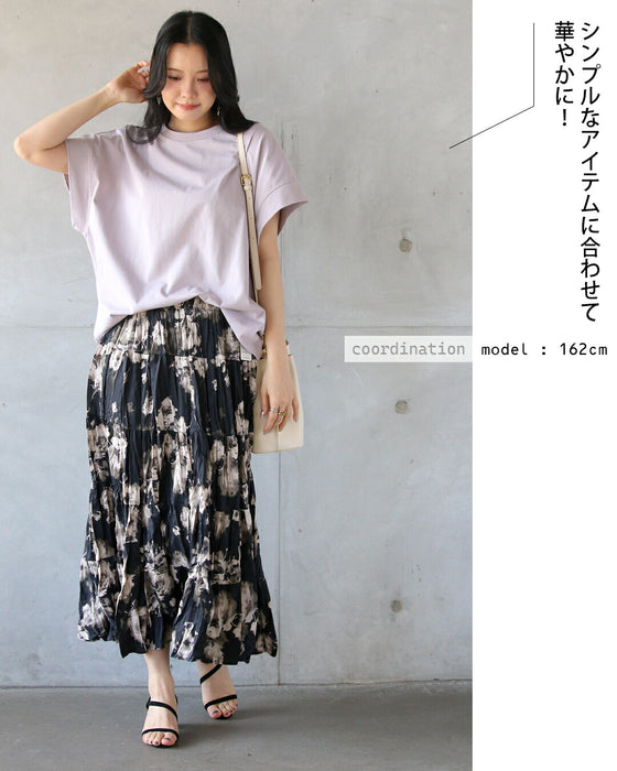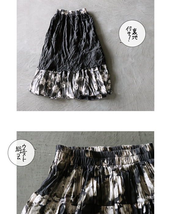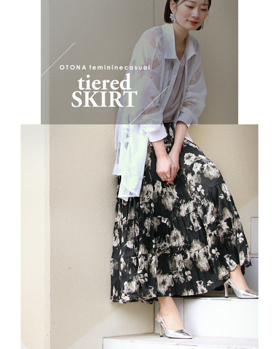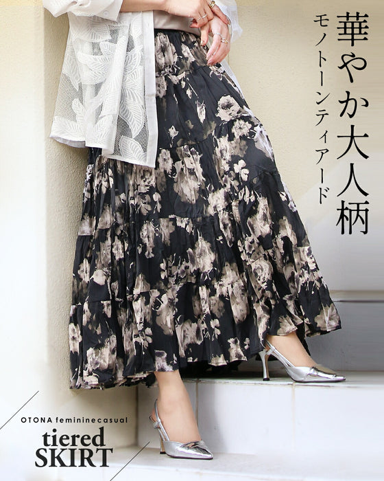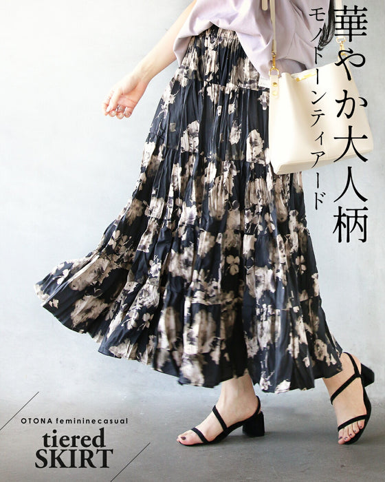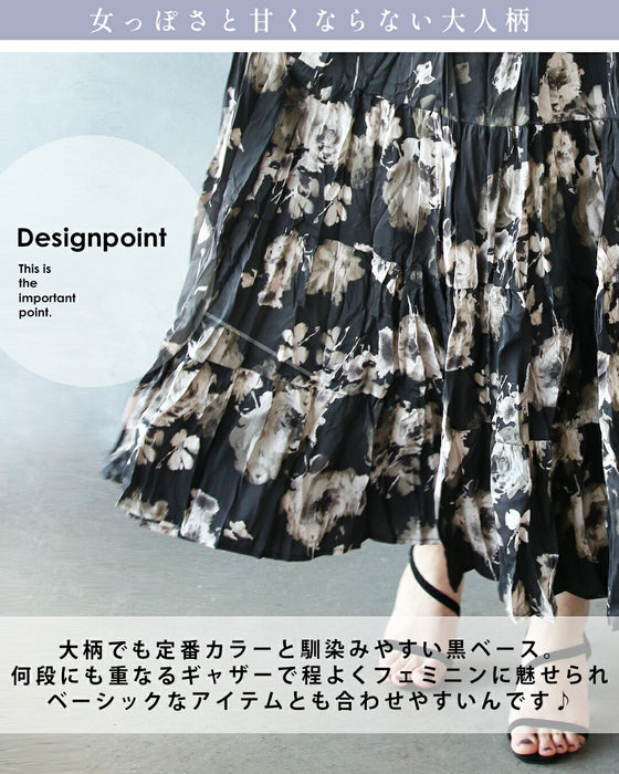 ■大柄でも定番カラーと馴染みやすい黒ベース。着回しやすく一気に華やか度増すティアードスカートです。