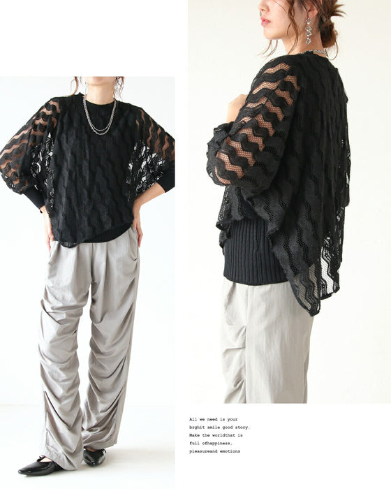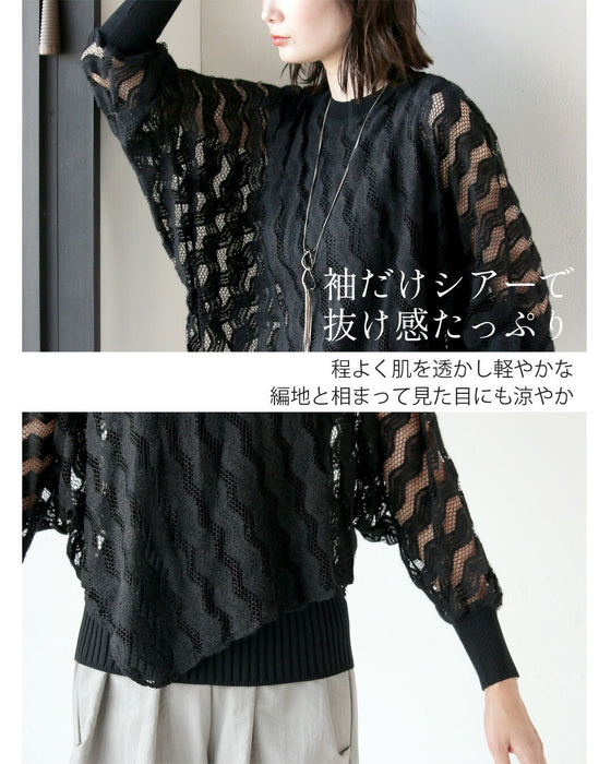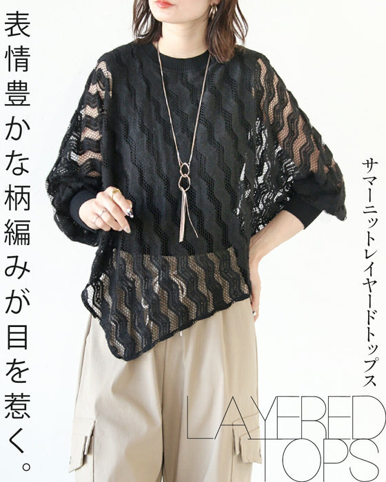 表情豊かな柄編みが目を惹く、サマーニットレイヤードトップス