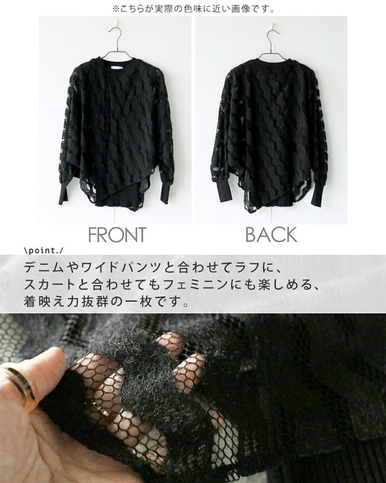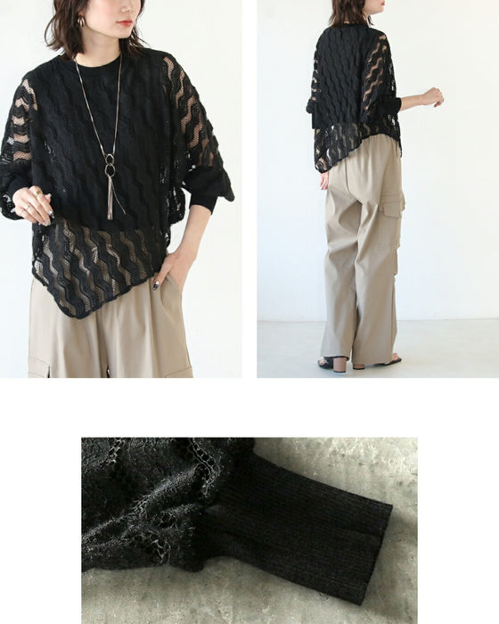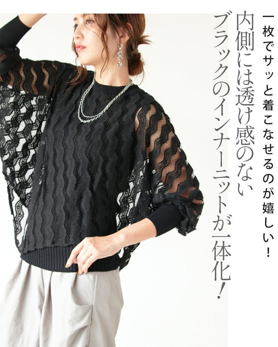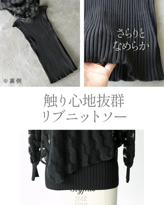 ■内側には透け感のないブラックのインナーニットが一体化したレイヤードデザイン。