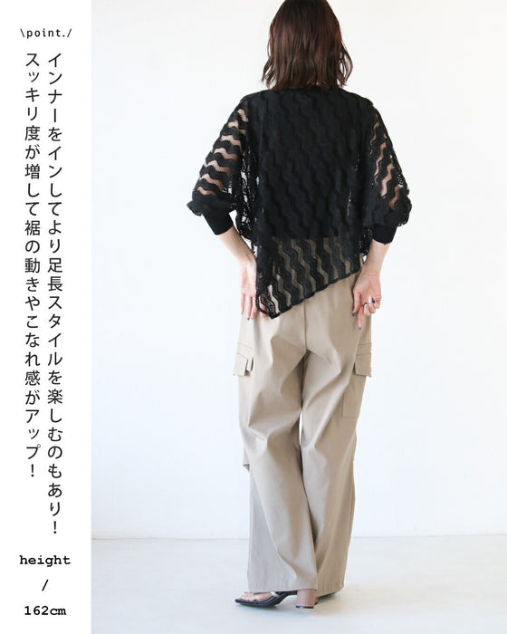 伸縮性と通気性に優れた素材感で、暑い季節にも快適な着心地です。