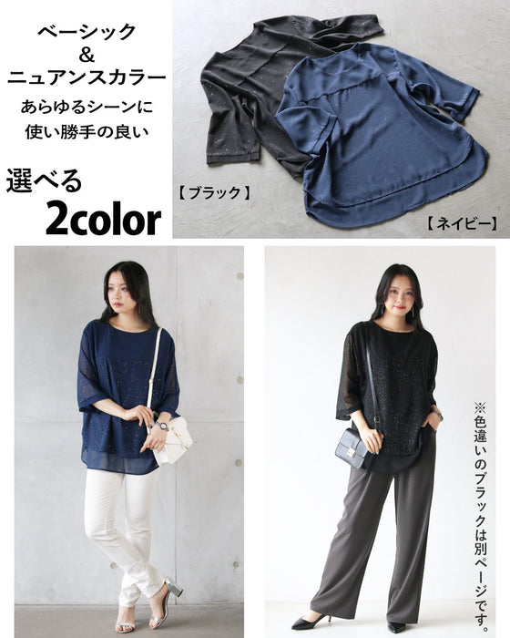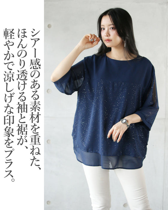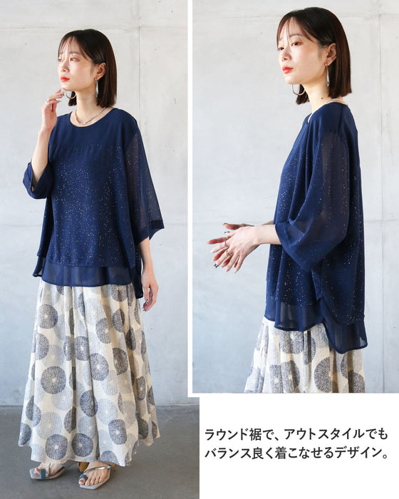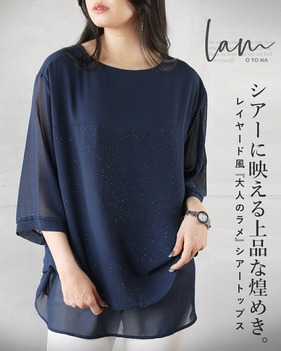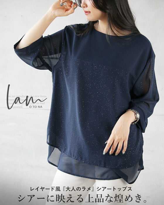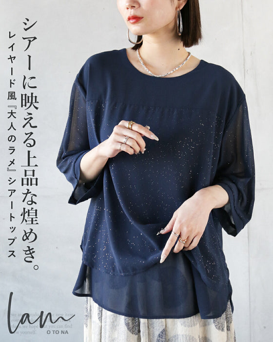 シアーに映える上品な煌めき レイヤード風大人のラメシアートップス