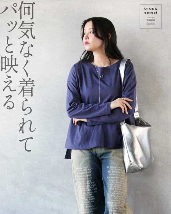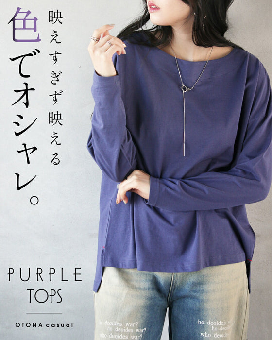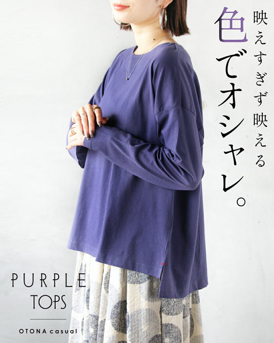 何気なく着てもやり過ぎないオシャレが叶う、程よく華のあるパープル。シンプルだからこそ着回しやすい1枚です。