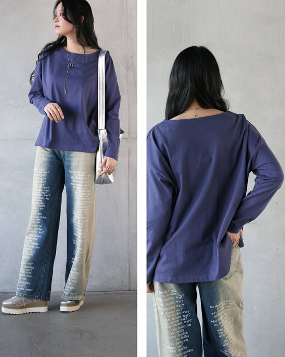 ■映えすぎない映える色。ボートネックで顔周りすっきり、1枚でシンプルに決まるカラートップスです。