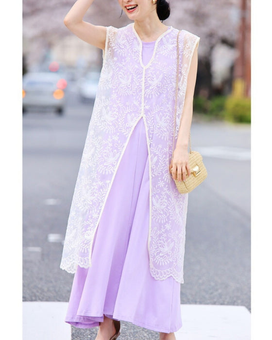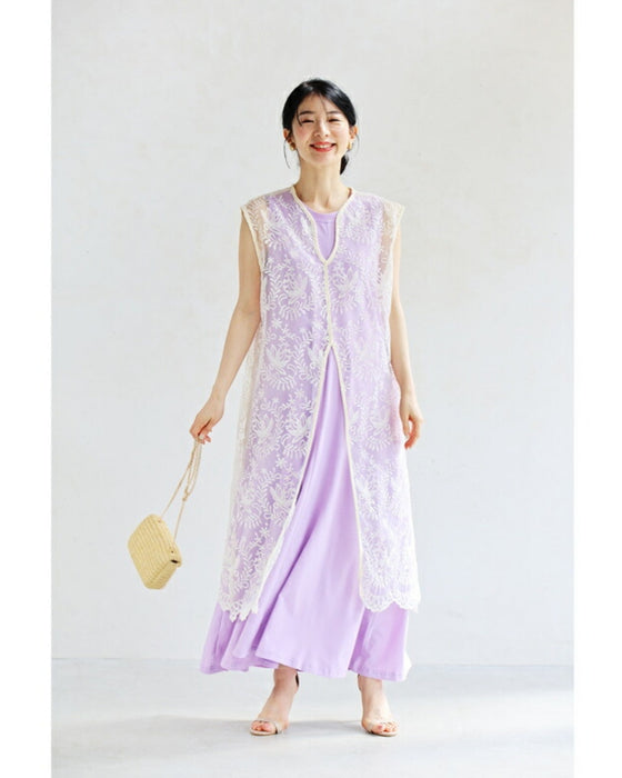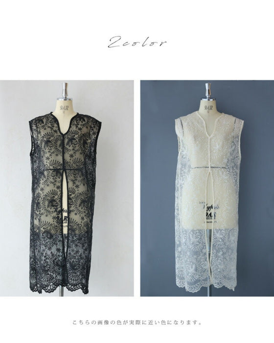総レースの透け感が中の服も華やかに見え、羽織るだけでオシャレで垢抜ける。