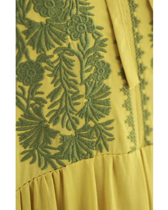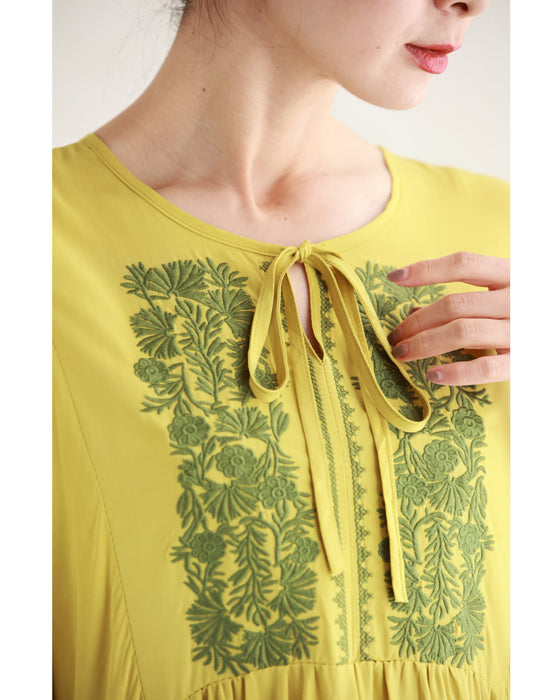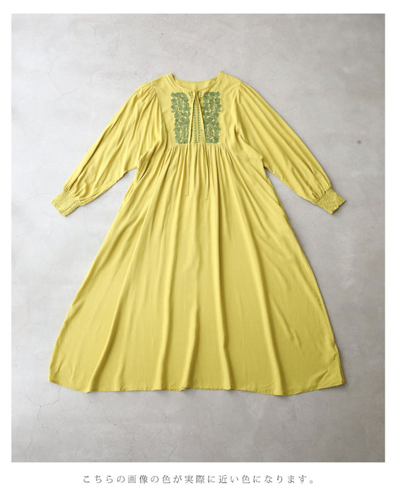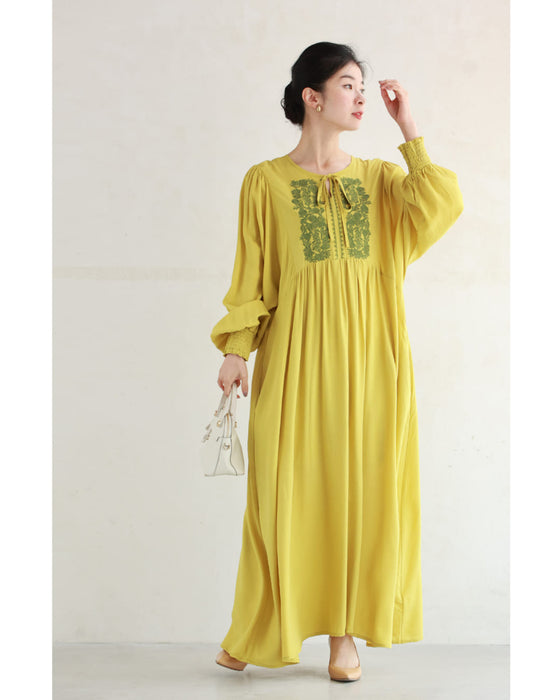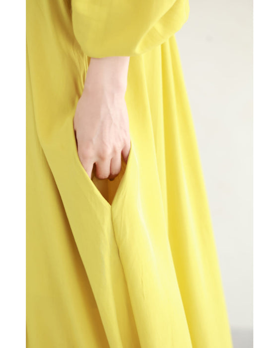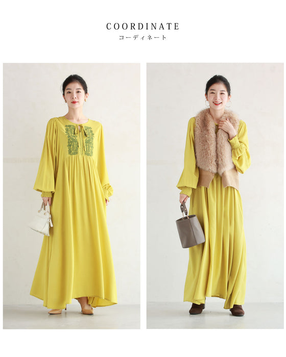 ポワン袖が女性らしさを引き立て、手元にさりげないアクセントを加えています。さらに、切り替え位置が高めに設定されているため、脚長効果も抜群。スタイルをすっきりと見せつつ、動くたびに優雅な印象を与えます。