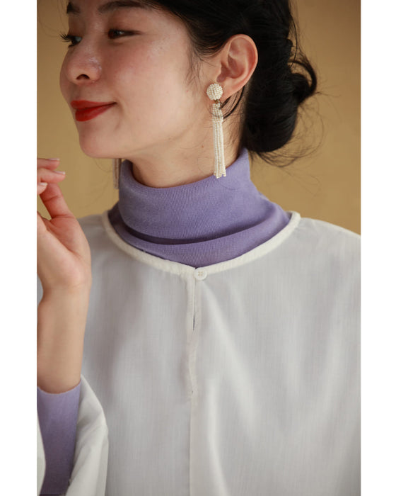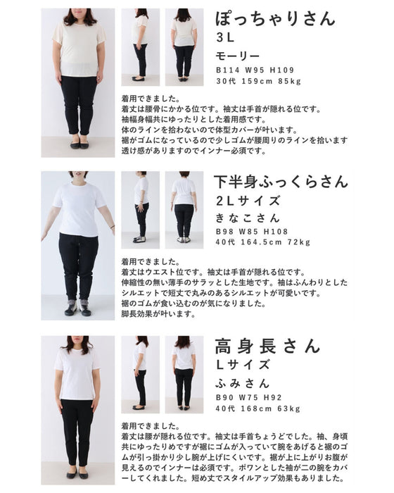 肩から袖にかけてゆったりとしたデザインが特徴で、二の腕周りにフィット感が少なく、動きやすさを提供します。二の腕に自信がない方でも、気になる部分をしっかりとカバーしてくれます。肩から袖にかけてのゆったり感が、全体のバランスをとり、体型を綺麗に見せる効果があります。