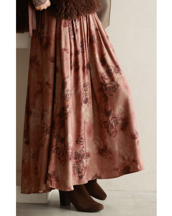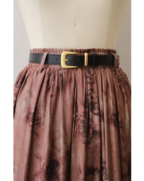 浮かび上がるバラ画のブラウスとスカートとベルト3点セット【set】