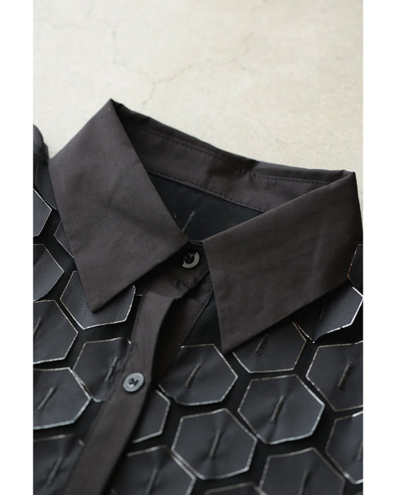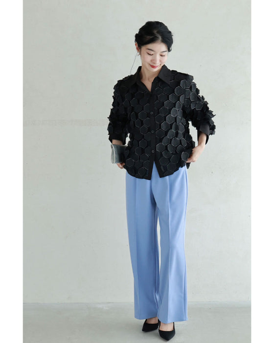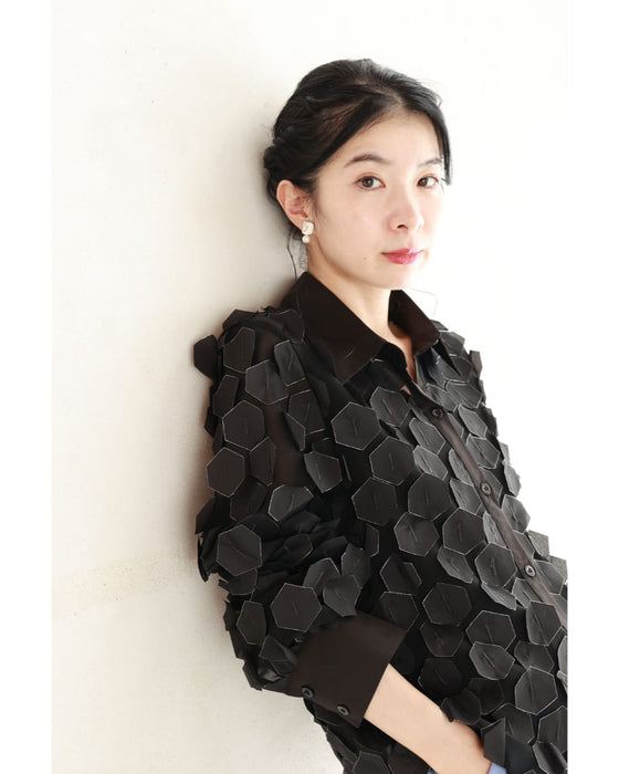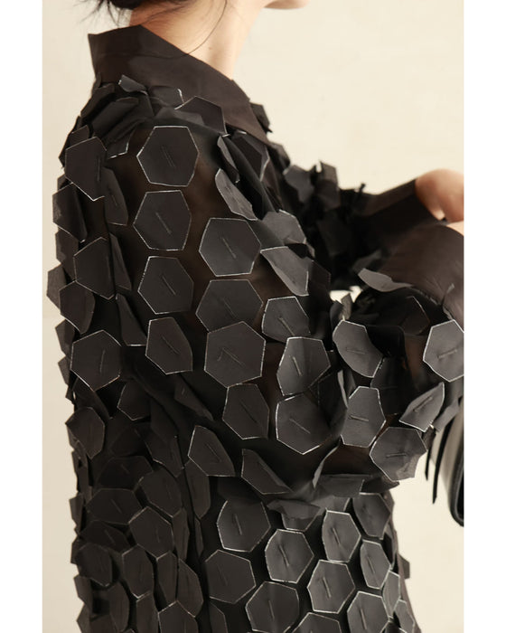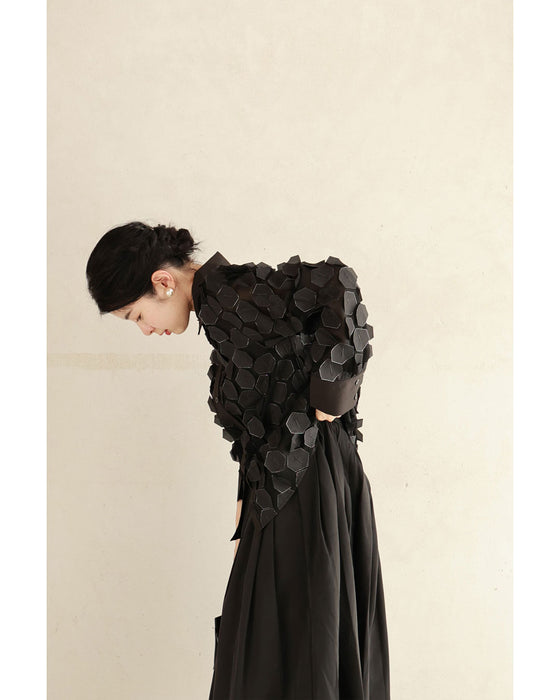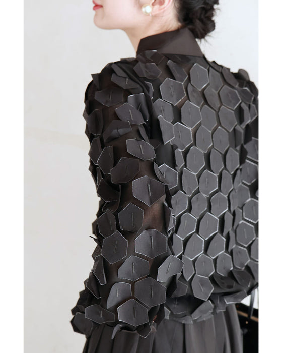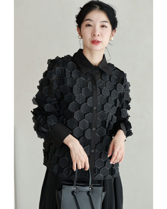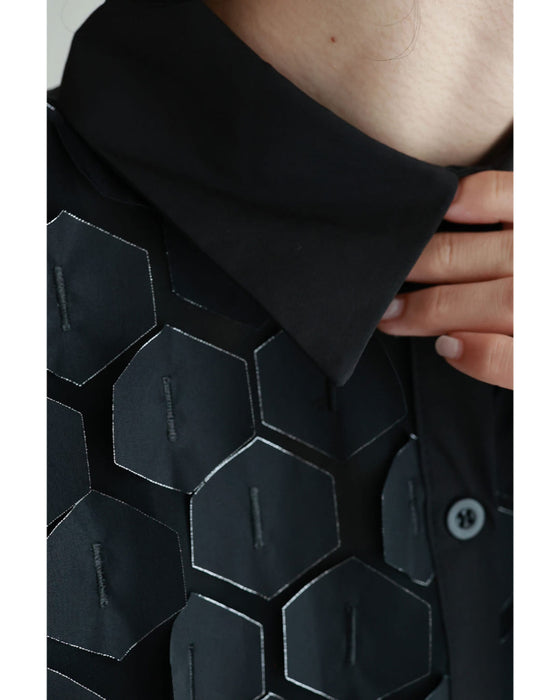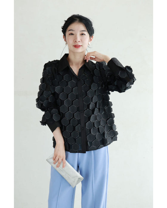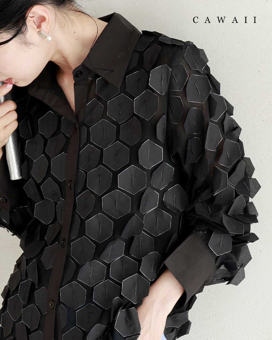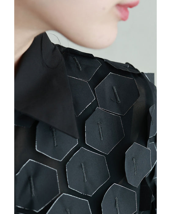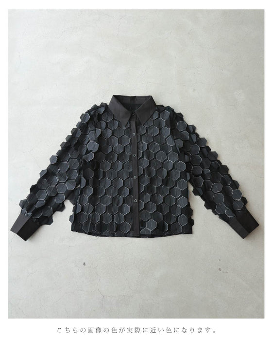 立体に浮かぶ六角形シャツトップス