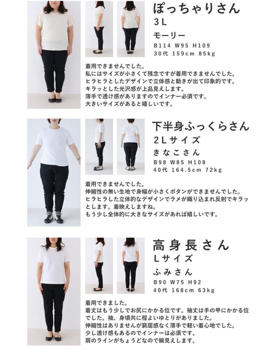 軽やかに着こなせる透け感のある生地は、季節を問わず快適な着心地です。風に舞うような軽やかさは、動くたびに心地よいひらひら感を演出し、まるで自分が主役になったかのような感覚を味わえます。透け感はさりげなく、肌を美しく魅せる効果もあり、コーディネートに華やかさをプラスします。