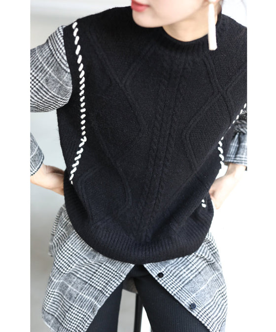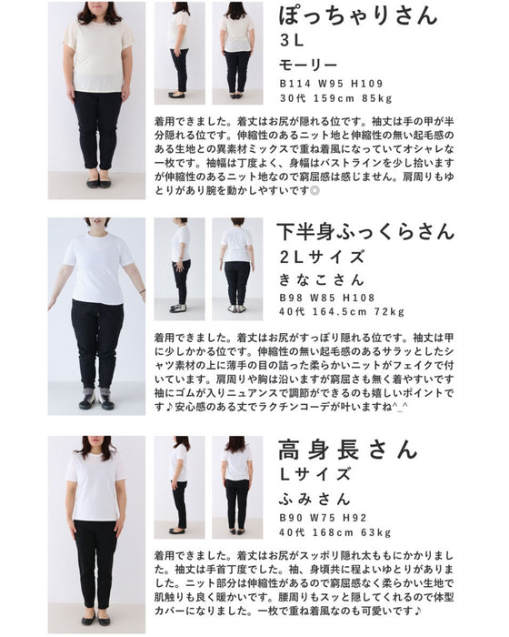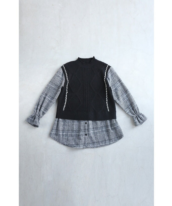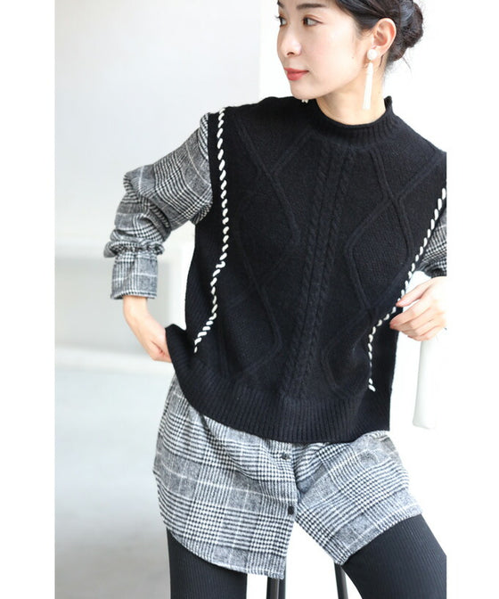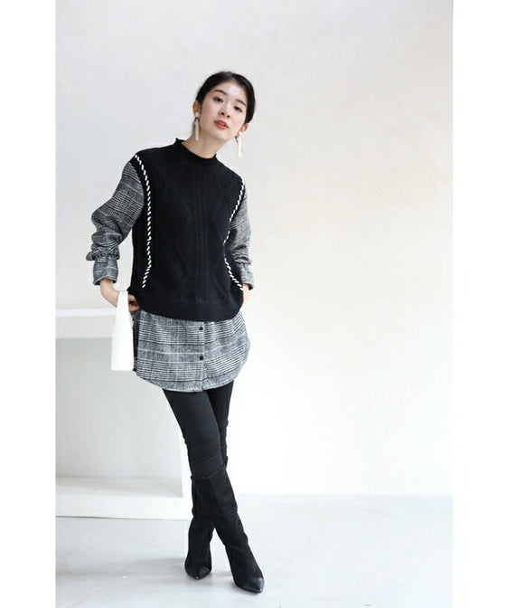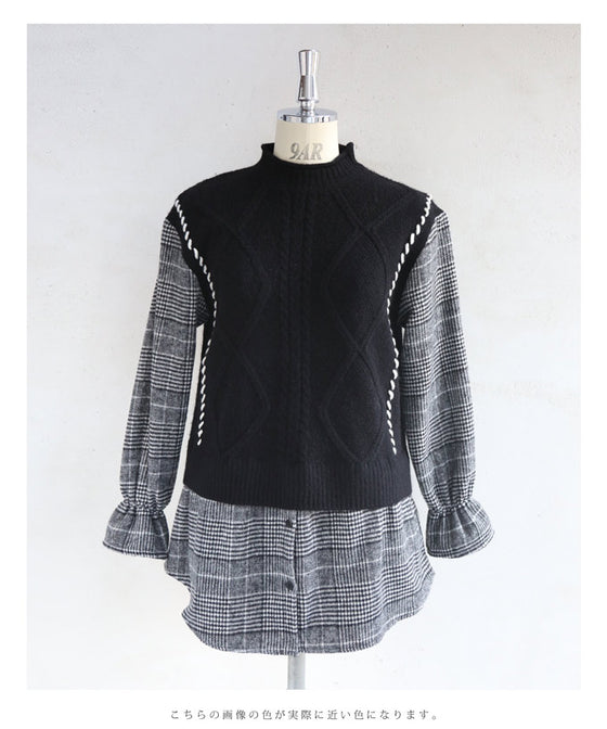 ステッチが可愛い重ね着風ドッキングニットプルオーバートップス