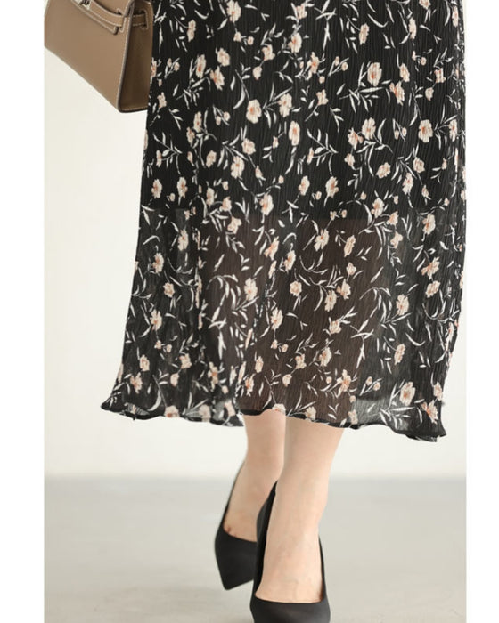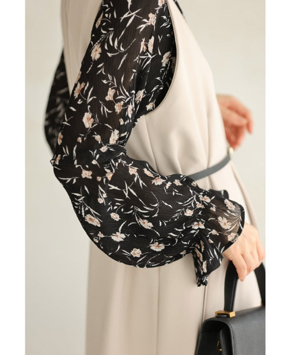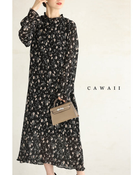 黒地にお花柄が映えて、お花柄も落ち着いた色合いだから派手ずぎず落ち着いた印象に◎