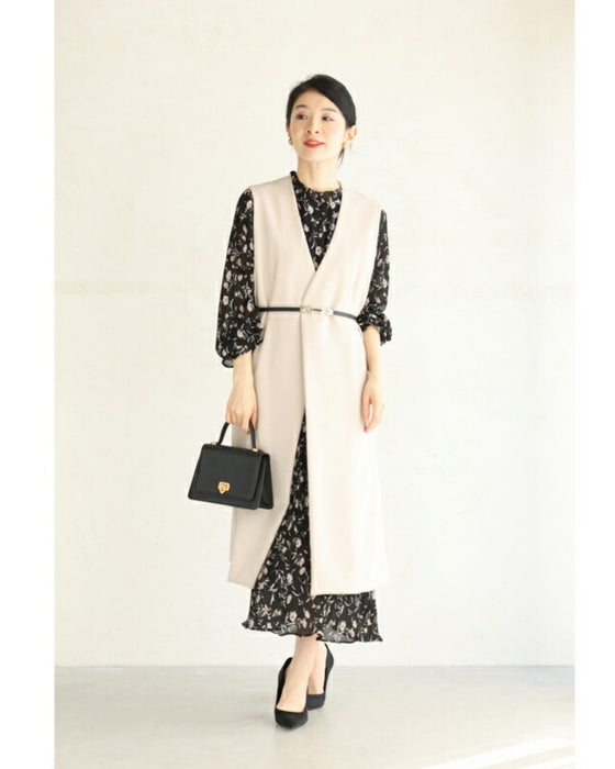 付属のベルトでウエストマークするとメリハリが出て女性らしいラインが引き立ちます。