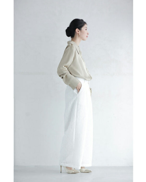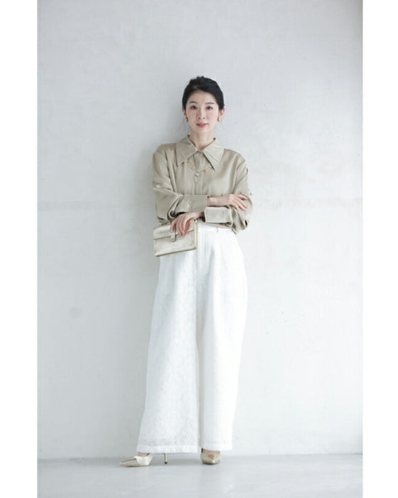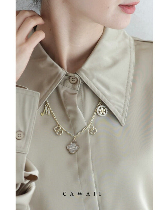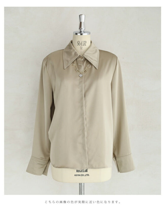 (チャーム付き)ネックレスチャームが揺れる艶シャツトップス