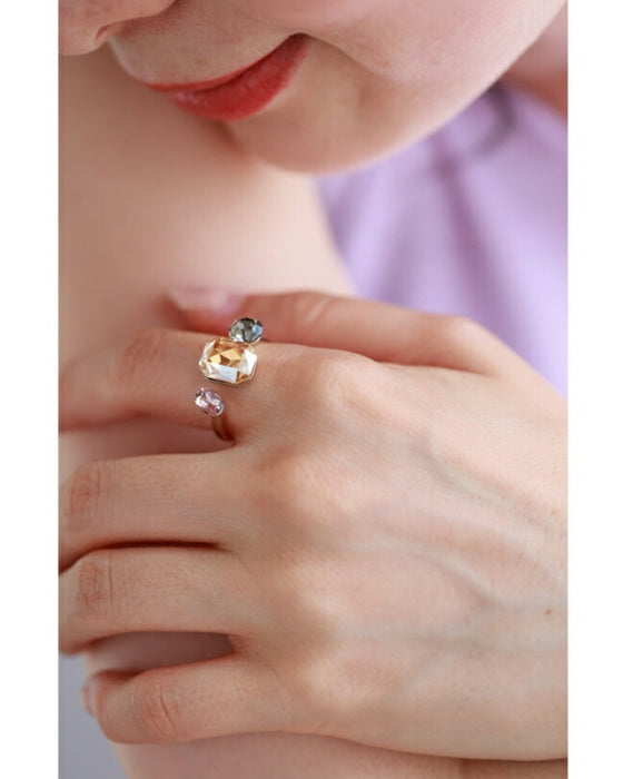 光が当たるたびに輝き、指元に美しいアクセントを添えます。華やかさをプラスし手元のおしゃれを引き立ててくれる一品です。