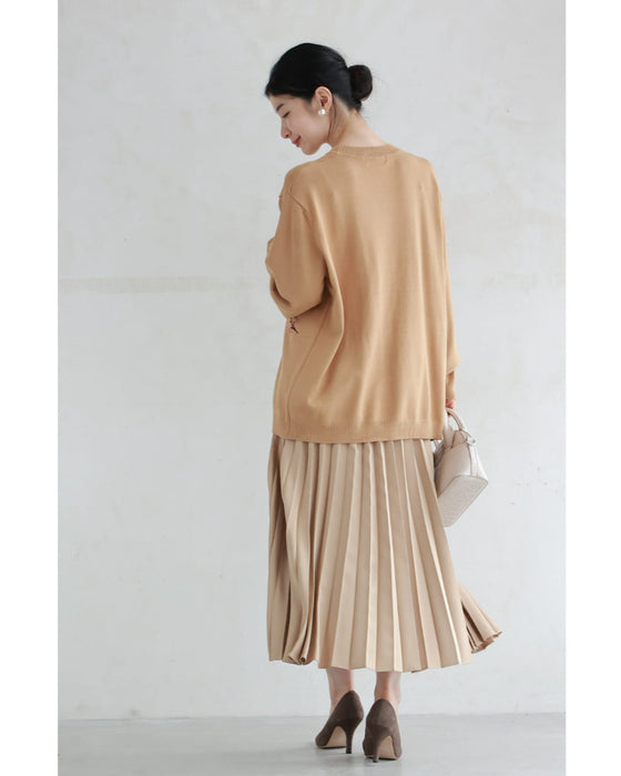 素材には目の細かな柔らかなニットが使用されており、肌触りがとても良く、快適な着心地を実現しています。寒い季節でも心地よく過ごせる温かさがありながら、軽やかさも兼ね備えているため、アウターとの重ね着にも最適です。