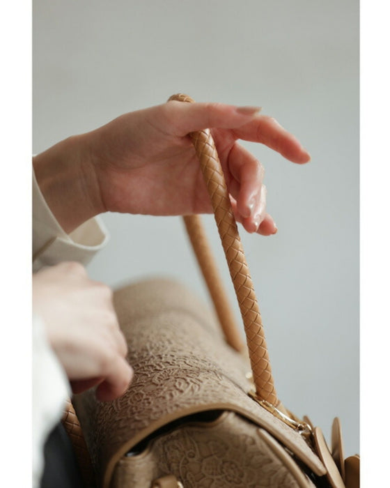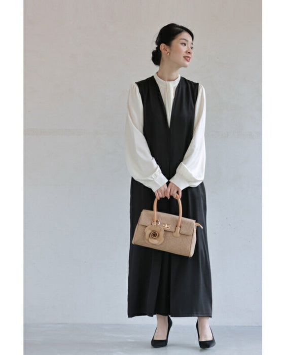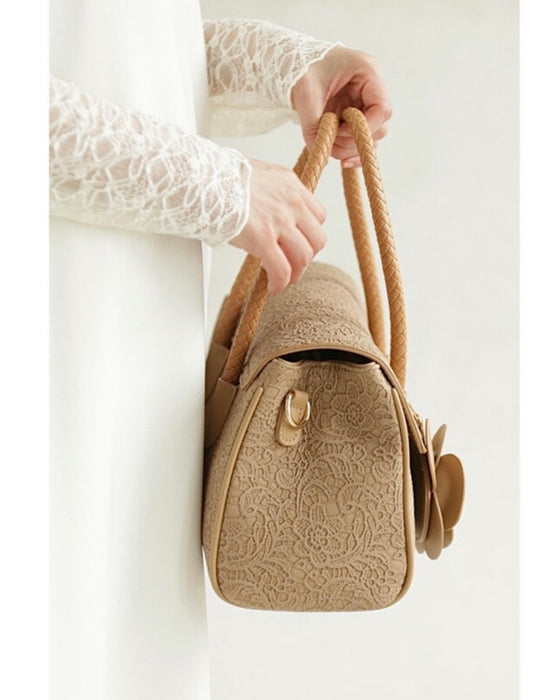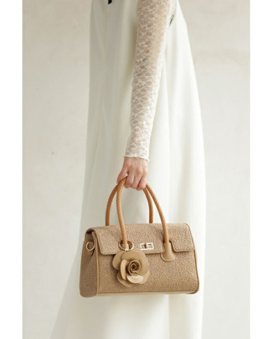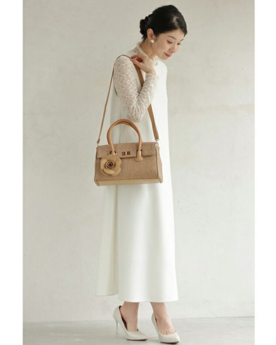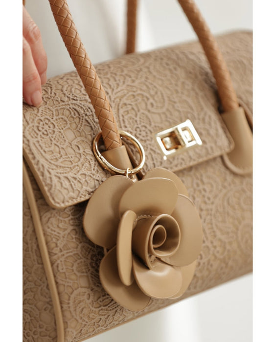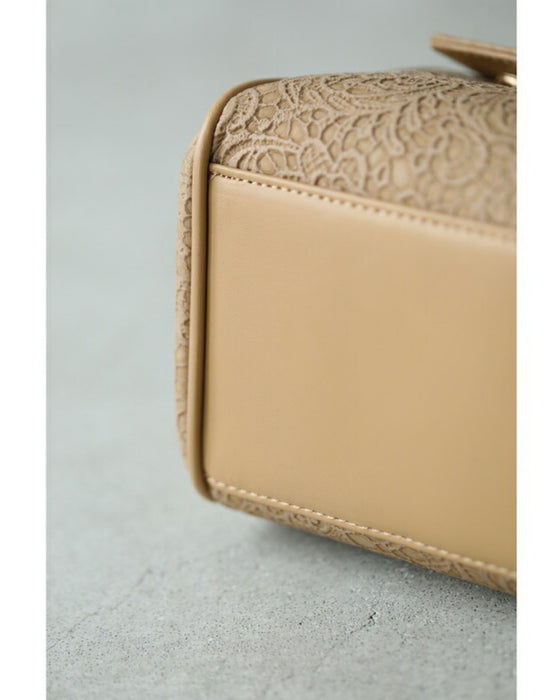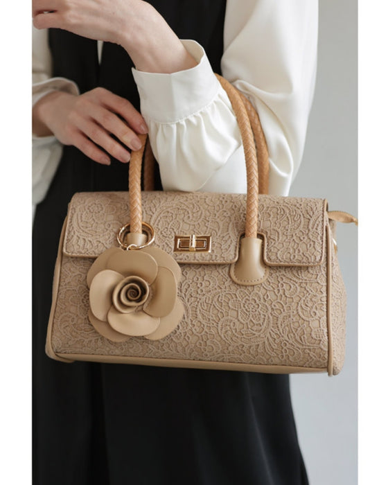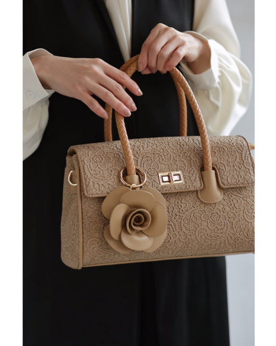 • レース模様浮き立つローズチャーム付き2wayハンドバッグ