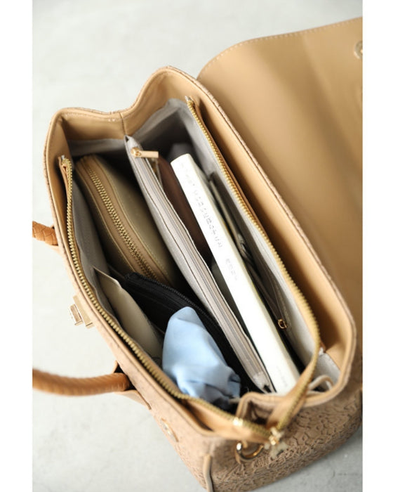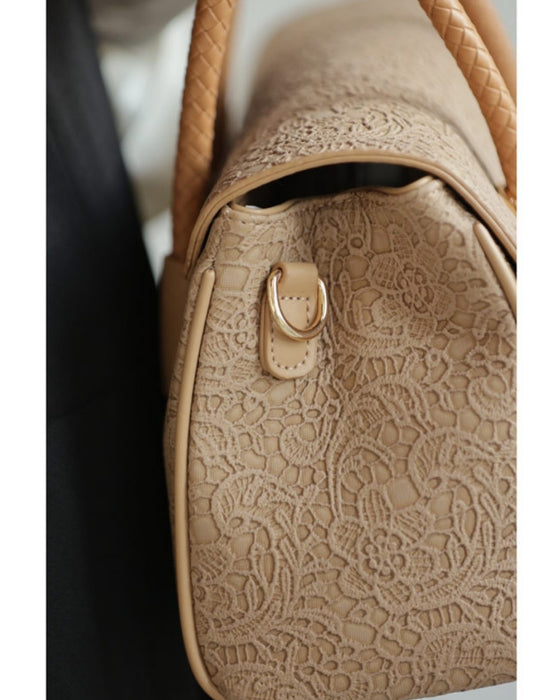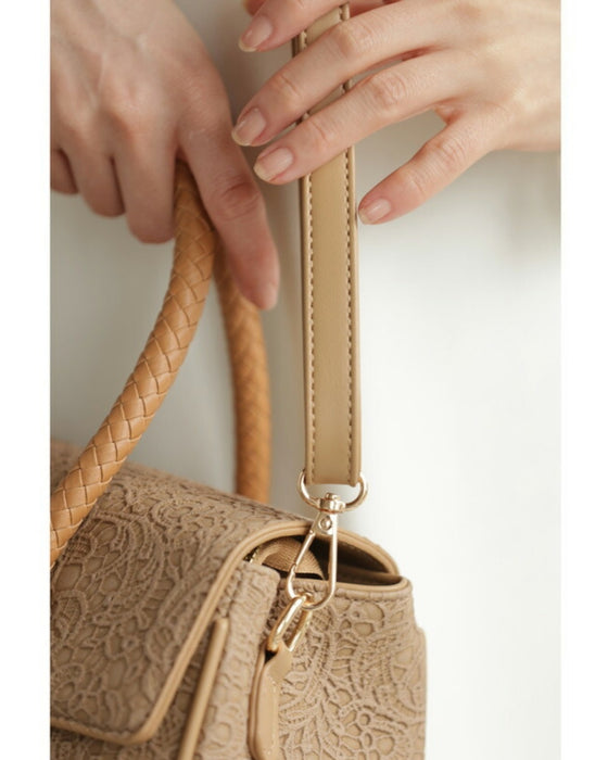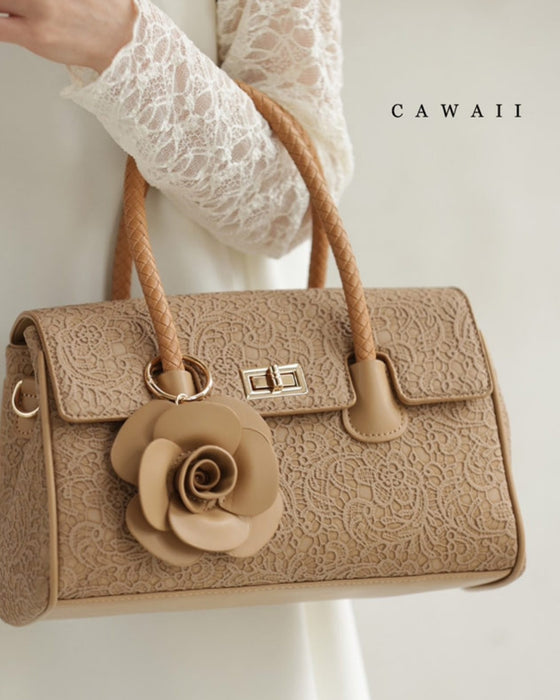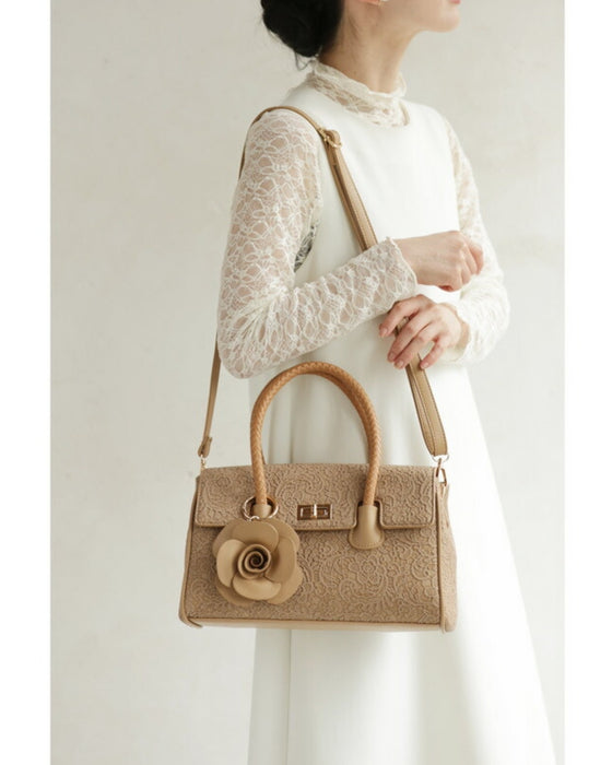 レース模様浮き立つローズチャーム付き2wayハンドバッグ