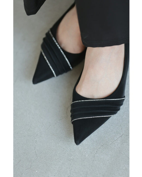 ラインストーンのキラキラとした煌めきで足元を華やかに見せてくれる♪